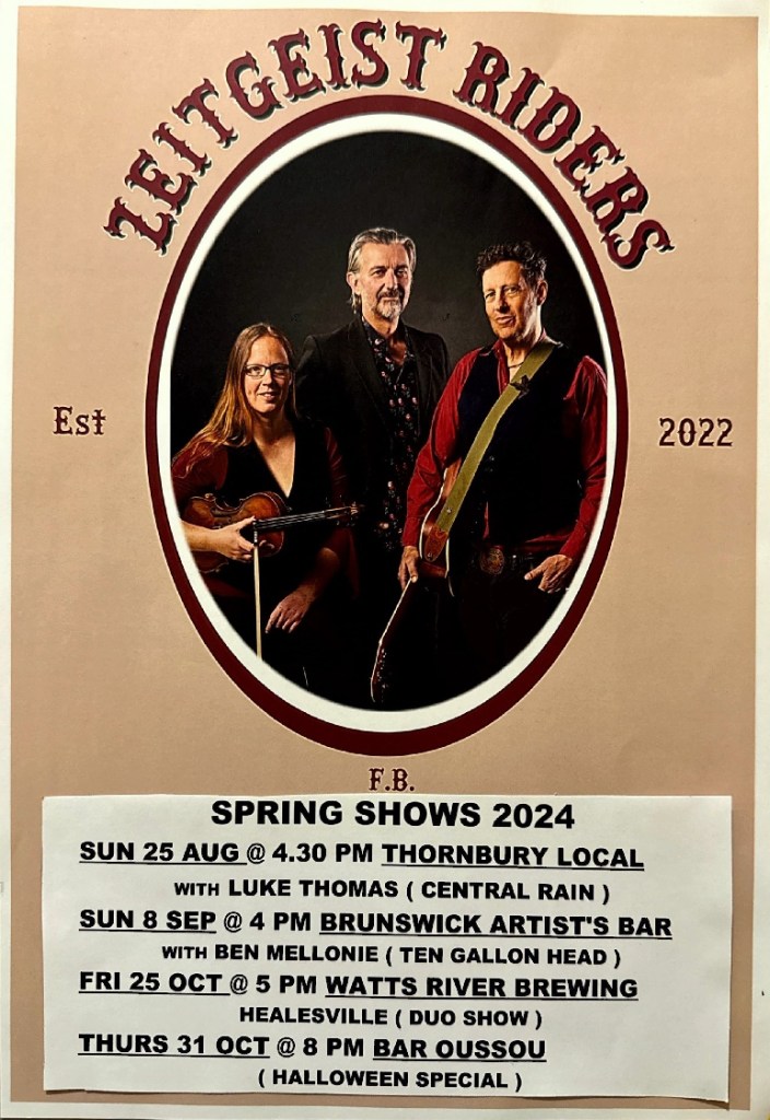 - THURS 31 OCT @ 8pm BAR OUSSOU (HALLOWEEN SPECIAL)SUN 25 AUG @ 4.30 PM THORNBURY LOCAL